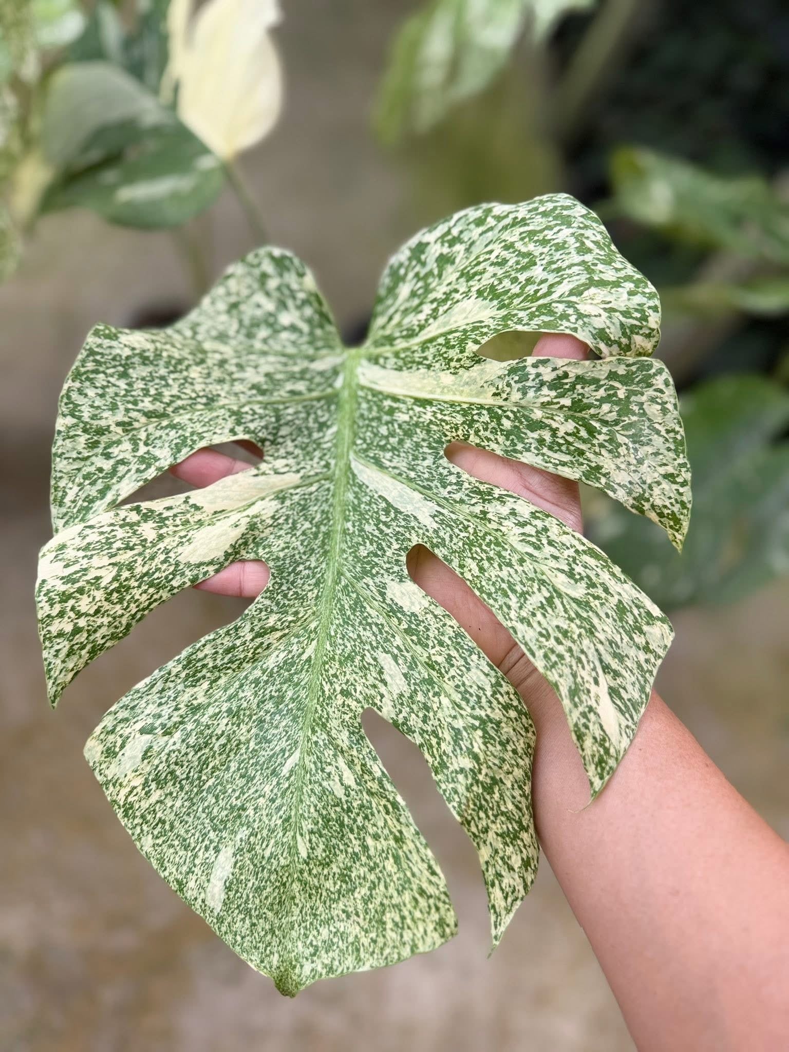 A truly breathtaking variegated Monstera, Starlight is admired for its dazzling constellation of creamy white speckles scattered across rich green leaves. Each leaf is a natural masterpiece—no two patterns are ever alike—making it one of the most captivating and collectible Monstera varieties.