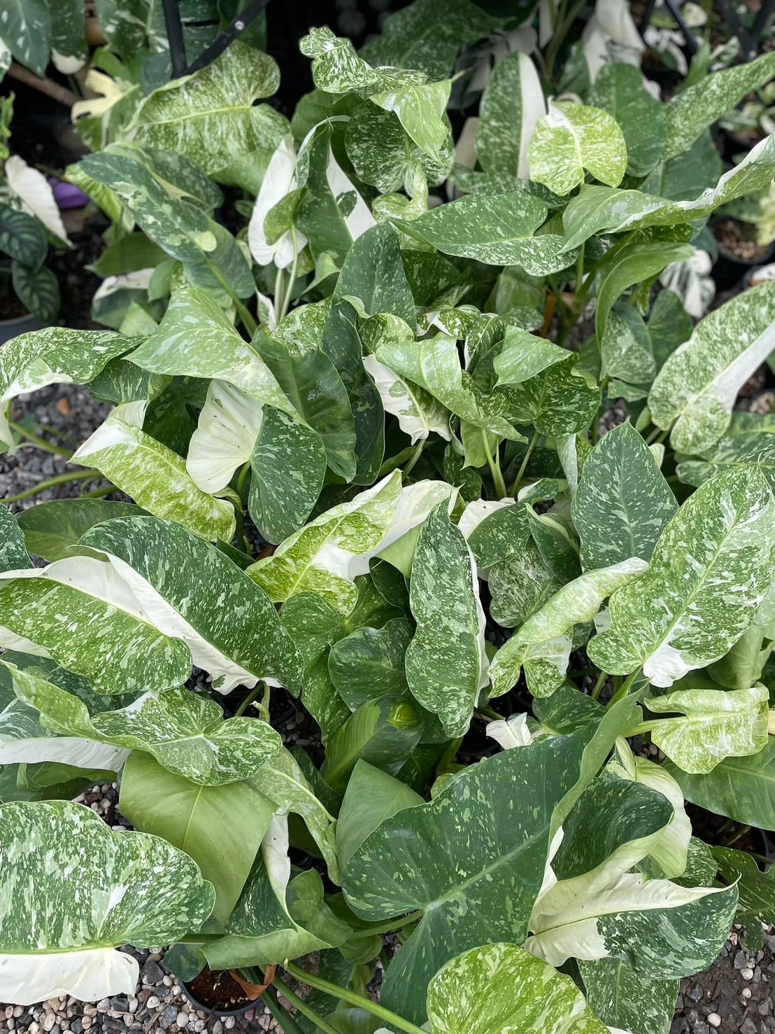 - Striking white-on-green variegation that changes with each new leaf